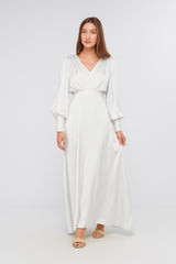 Layla Emerald White Satin Maxi Dress With Long Sleeves